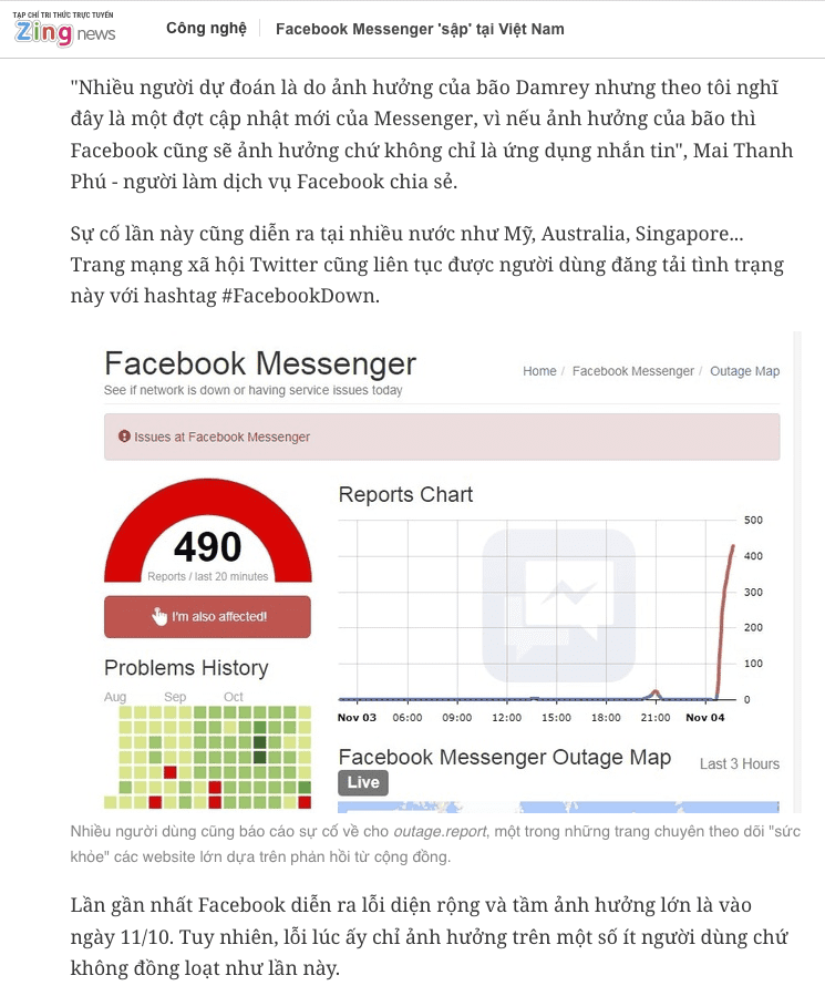 Người dùng di động không thể gửi tin nhắn qua Messenger, trong khi người dùng máy tính thậm chí còn không thể xem lịch sử tin nhắn. Lỗi xảy ra trên diện rộng với tầm ảnh hưởng lớn.