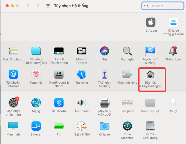 Bước 3: Nhấp vào “Bảo mật và quyền riêng tư” (Security Privacy).