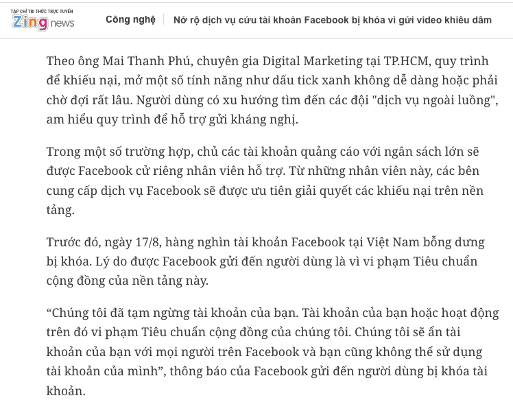 Giới làm dịch vụ Facebook tại Việt Nam báo giá 1-5 triệu đồng để mở khóa các tài khoản vi phạm chính sách cộng đồng khi chia sẻ video khiêu dâm.